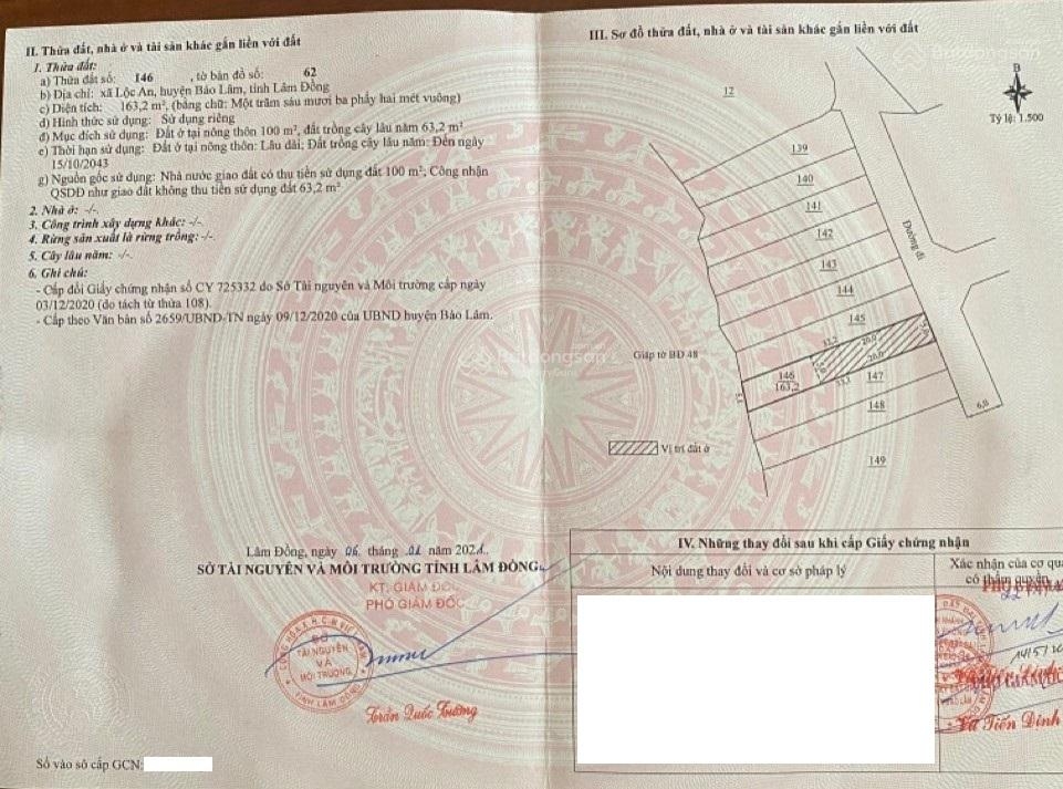 Chính chủ cần bán đất thổ cư, diện tích 163m² có sẵn 100m² thổ cư tại xã Lộc An, huyện Bảo Lâm.